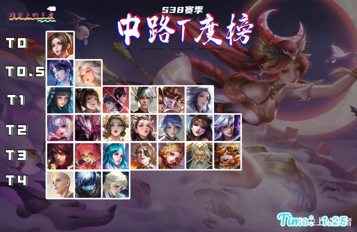 不过T2并不是说她弱,高上限但低门槛的特性使得她的受众群体很广,一因此你会见到那种要么乱杀要么乱送的局面,总体来说我还是更倾向于边路貂蝉,中路炮台和大法师越来越多,貂蝉的机制优势并不大。